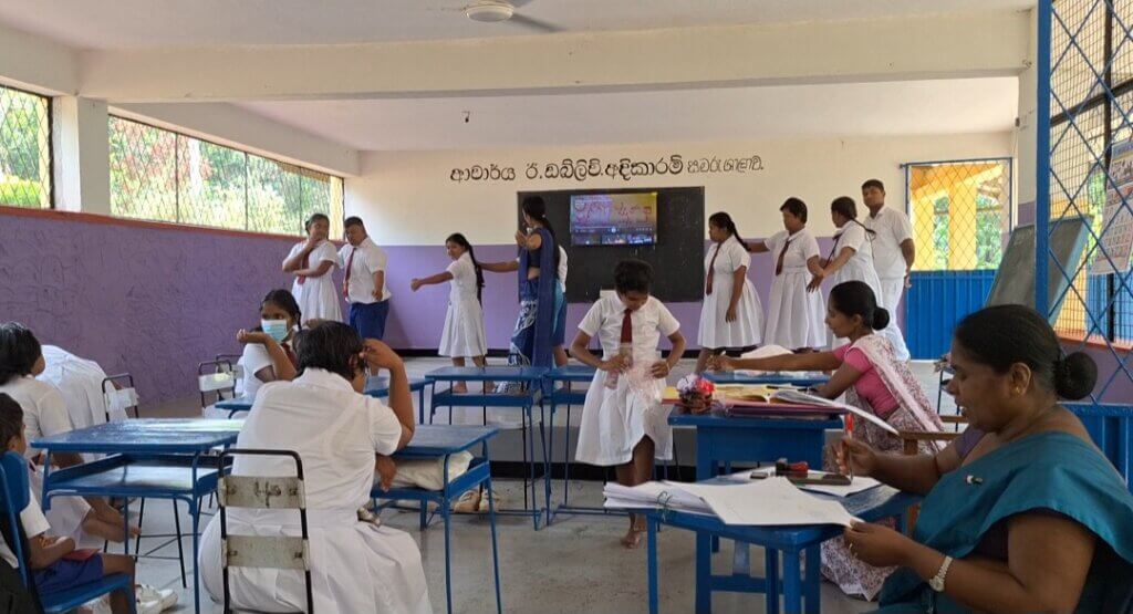 Tijdens ons bezoek waren de leerlingen dans aan het oefenen voor het aankomende Boedistische nieuwjaar in april.