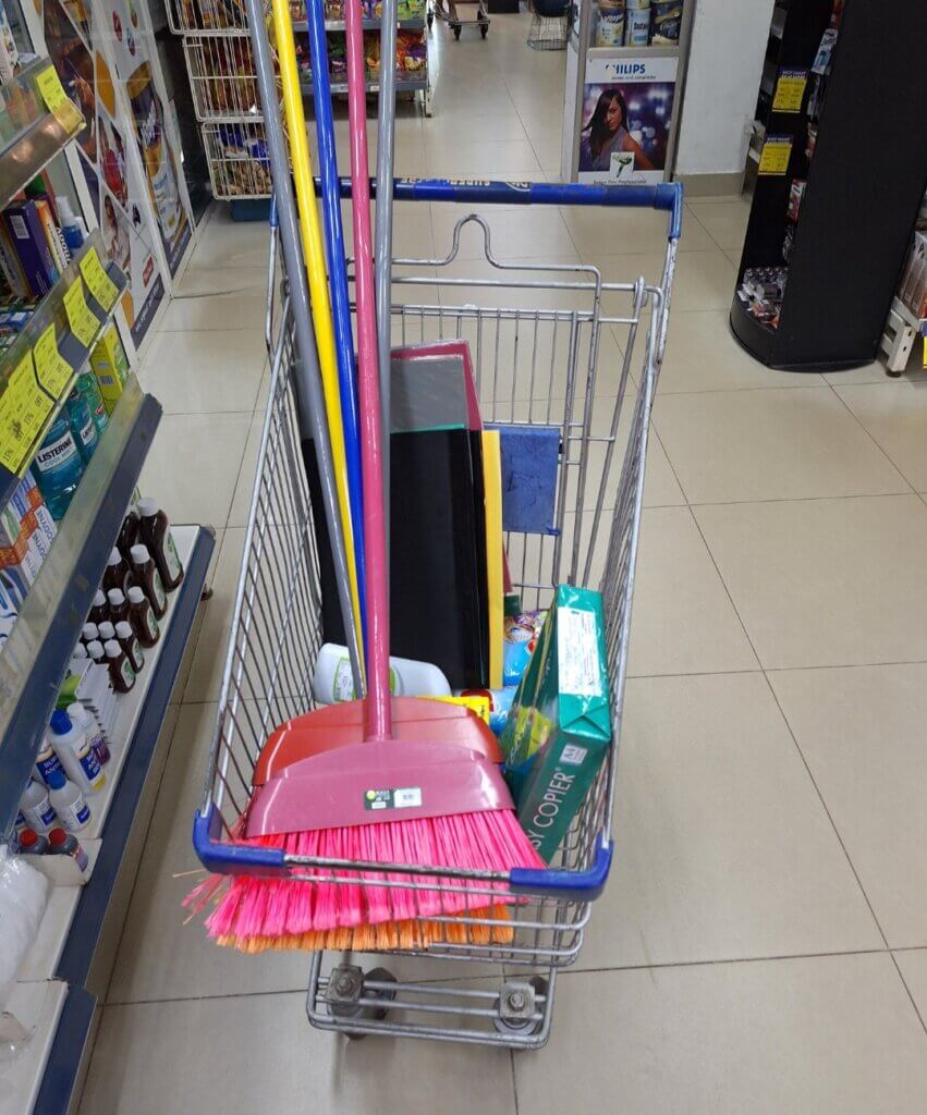Vanochtend hebben wij de wensen van de school kunnen vervullen. In de supermarket hebben wij A4papier, keep, dettol, waspoeder en bezems gekocht. En op de rit naar de school toe nog een paar grote bezems. Zo konden we de items rond 12 uur bij de schoolafleveren