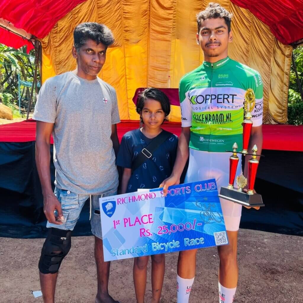 De twee jongens, Eranga en Navindu fietsen beiden wedstrijden. Fietswedstrijden op een zogenaamde standardbike. Vaak is hier voor de eerste 10 rijders in de uitslag aardig wat ruppees te verdienen, want de wielersport is er populair op Sri Lanka.