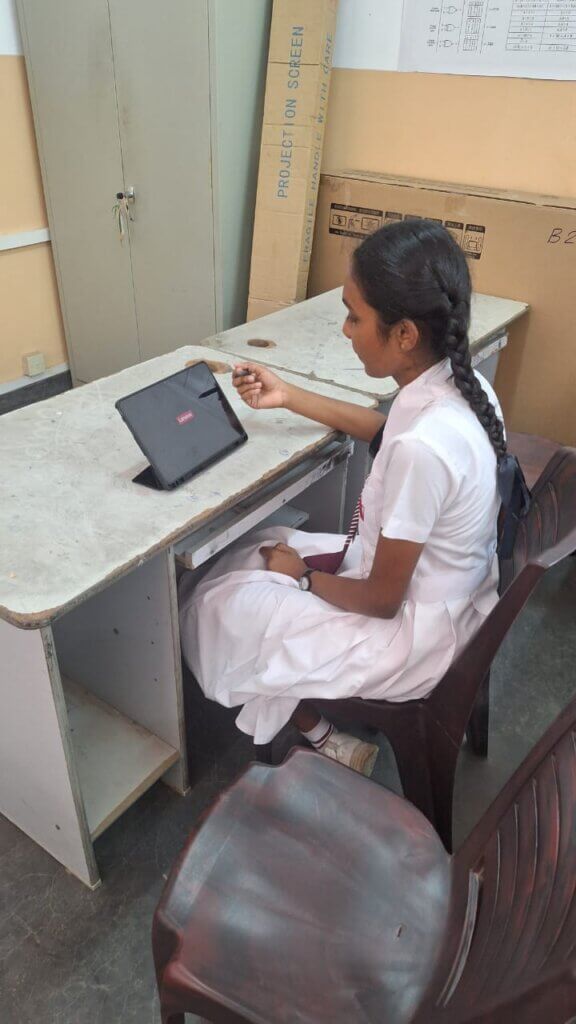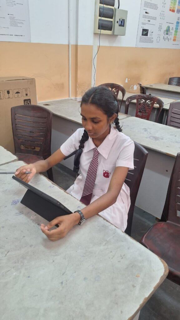 Tijdens ons eerste bezoek waren de leerlingen volop een dans aan het oefenen. In april wordt in Sri Lanka het Boeddhistische nieuwe jaar gevierd en hiervoor werd al volop geoefend.