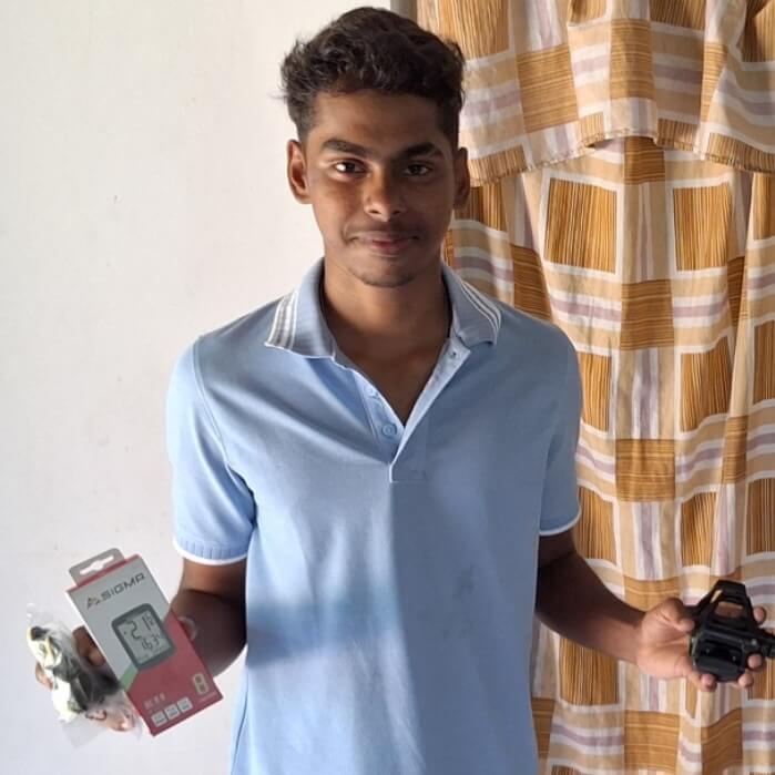 Vanuit Nederland hebben wij voor Navindu en Eranga nieuwe pedalen, met schoenplaatjes en een fietscomputer meegenomen.